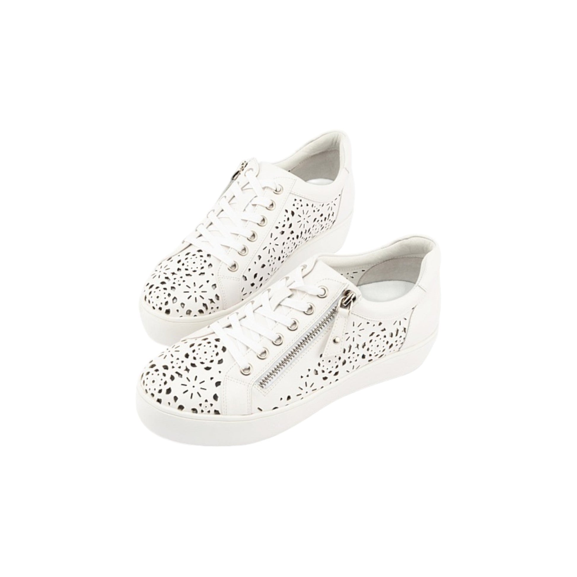 This women’s wide-fit sneaker combines comfort and functionality with a dual zip-and-lace fastening system for a secure fit and easy on-off wear. The padded heel grip enhances stability and reduces slippage, while the Arch Comfort Zone Insole provides heel-to-toe cushioning and contoured arch support for all-day comfort.